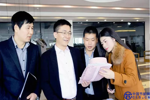 江陰福斯特紡織有限公司董事長楊國鋒(左二)與企業(yè)人員一起研究產(chǎn)品。徐國營攝