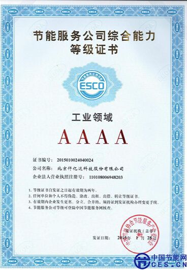 近日,由中國節(jié)能協(xié)會節(jié)能服務(wù)產(chǎn)業(yè)委員會(EMCA)協(xié)會組織的節(jié)能服務(wù)公司評級及2014年節(jié)能服務(wù)產(chǎn)業(yè)評優(yōu)活動結(jié)果揭曉。仟億達(dá)股份喜獲節(jié)能服務(wù)公司綜合能力“AAAA”級企業(yè)。
