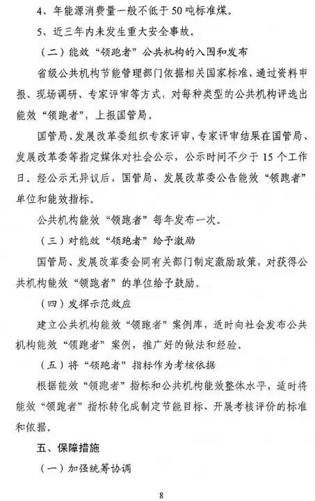 國(guó)管局、發(fā)展改革委會(huì)同有關(guān)部門制定激勵(lì)政策,對(duì)獲得公共機(jī)構(gòu)能效“領(lǐng)跑者”的單位給予鼓勵(lì)。