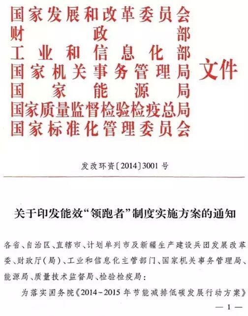 發(fā)改環(huán)資【20143001號(hào) 關(guān)于印發(fā)能效“領(lǐng)跑者”制度實(shí)施方案的通知