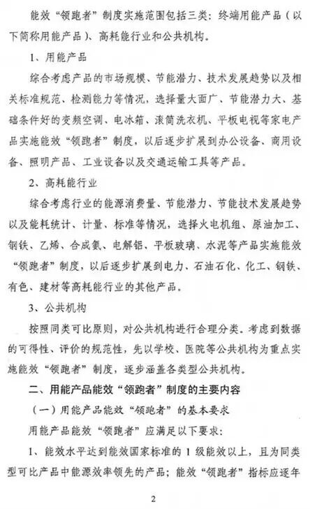 能效“領(lǐng)跑者”制度實(shí)施范圍包括三類:終端用能產(chǎn)品(以下簡(jiǎn)稱用能產(chǎn)品)、高耗能行業(yè)和公共機(jī)構(gòu)。