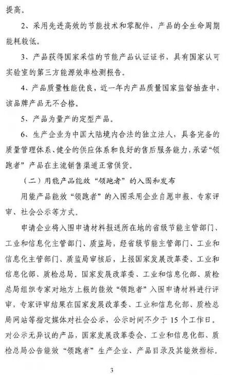 用能產(chǎn)品能效“領(lǐng)跑者”的入圍采用企業(yè)自愿申報(bào)、專家評(píng)審、社會(huì)公示等方式。
