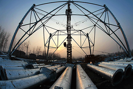 連日來,淮南-南京-上海1000千伏交流特高壓輸變電(揚(yáng)州寶應(yīng)段)加緊組塔施工。該工程揚(yáng)州段全長(zhǎng)約31.5公里,共計(jì)將建設(shè)鋼管塔54基,是揚(yáng)州境內(nèi)的首條特高壓線路。圖為正在建設(shè)的1000千伏淮上線特高壓(揚(yáng)州寶應(yīng)段)建設(shè)工地:
