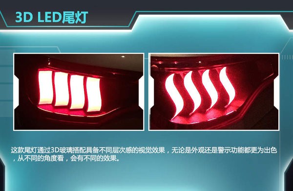 3D LED尾燈,從不同的角度看,會有不同的效果。代表奧迪未來設(shè)計發(fā)展方向的概念車——奧迪Prologue的尾燈已經(jīng)體現(xiàn)了這種設(shè)計。在今年1月舉辦的CES電子消費展上,奧迪發(fā)布了Prologue概念車,該車有望成為奧迪A9旗艦車的雛形,其展車的尾燈也使用了全新的設(shè)計,3D玻璃搭配具備不同層次感的視覺效果,無論是外觀還是警示效果上都更為出色。