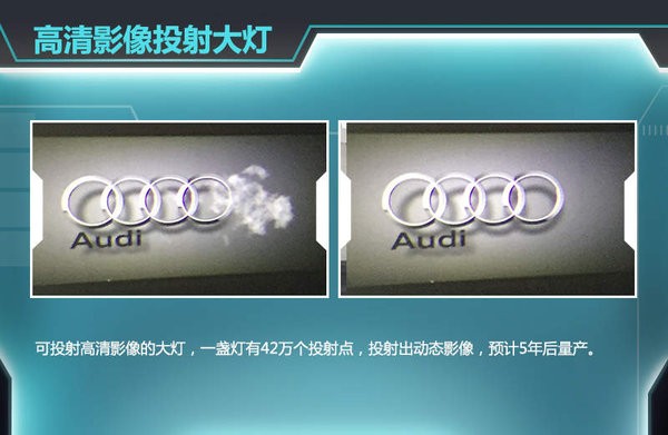 可投射高清影像的大燈,一盞燈有42萬個投射點,投射出動態(tài)影像,預計5年后量產(chǎn)。