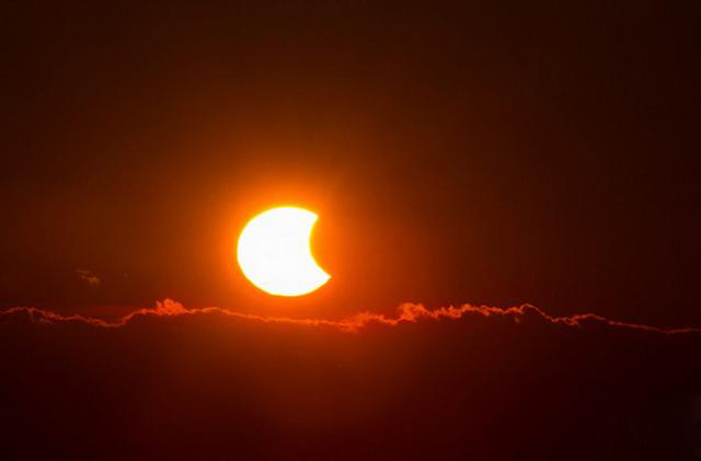 2014年10月在美國仙納度國家公園觀測到的日偏食。今年3月20日出現(xiàn)的日食將對歐洲太陽能發(fā)電帶來影響。