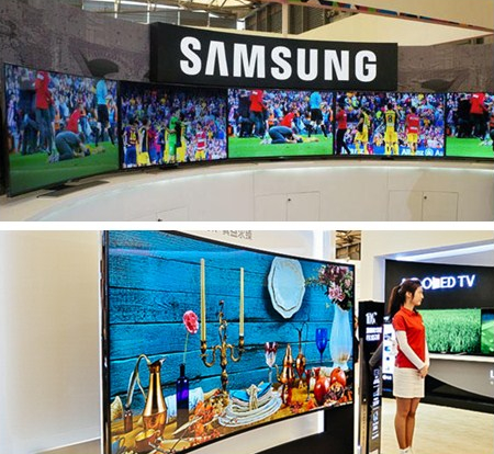 40吋已滿足不了人們對(duì)于大屏影視的需求,55吋看著才像點(diǎn)樣子,105吋看著那才叫過癮。在AWE2015上,LG 105吋21:9曲面至真5K電視華麗亮相,這款價(jià)格堪比豪車的“客廳巨無霸”成為眾多消費(fèi)者流連AWE LG展區(qū)的理由。無獨(dú)有偶,三星105吋曲面電視同樣驚艷現(xiàn)場(chǎng),引無數(shù)消費(fèi)者前往三星展臺(tái)。