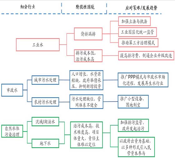 目前,中國(guó)水處理市場(chǎng)可粗略分為工業(yè)水處理、市政水處理和自然水體污染治理三大板塊。