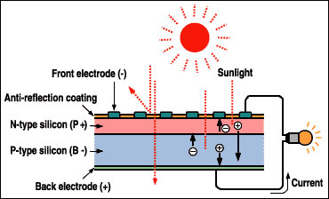 太陽(yáng)能電池板受到日照后的變化,以硅板為例