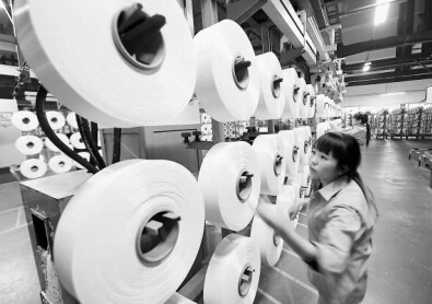 3月17日,杭州一家化纖企業(yè)的兩位女工對(duì)化纖成品做外觀檢查。該企業(yè)耗資2.5億元引進(jìn)自動(dòng)化生產(chǎn)線,產(chǎn)品的生產(chǎn)、運(yùn)輸、檢驗(yàn)、倉儲(chǔ)全由機(jī)器完成,減少40%的勞動(dòng)力。
