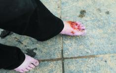 事發(fā)之初,在“熱河”上游,有人趁機打撈及撿拾被沖走和擱淺的水果,也有人因受阻于水流又不想繞道,冒險趟水結(jié)果被燙。其中一名老太太被燙傷較重,左腳背兩處禿嚕皮,鞋襪脫掉后無法行走,坐等在市場門口,被趕來的子女打車送到了大化醫(yī)院。