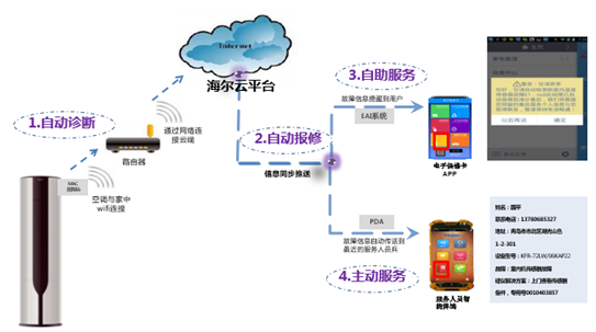 在以往的家電服務(wù)當(dāng)中,如果用戶(hù)有服務(wù)需求,需要先反饋給服務(wù)中心,再由服務(wù)中心派出人員上門(mén)服務(wù),手續(xù)繁瑣,等待時(shí)間長(zhǎng),服務(wù)相對(duì)緩慢。但是海爾U+智聯(lián)服務(wù)模式在云數(shù)據(jù)的支持下,實(shí)現(xiàn)智能家電的自動(dòng)診斷,并及時(shí)反饋給海爾云,由服務(wù)中心派出服務(wù)兵主動(dòng)聯(lián)系用戶(hù)上門(mén)服務(wù),更加快速的響應(yīng)用戶(hù)需求,為用戶(hù)提供更加方便的服務(wù)體驗(yàn)。