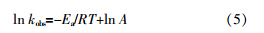 式中:Ea——反應(yīng)活化能,kJ/mol;