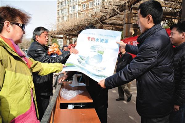 3月20日,西山楓林小區(qū)廣場,市水政大隊第一分隊開展“水日水周”宣傳活動,號召居民愛護水資源。 市水務局供圖