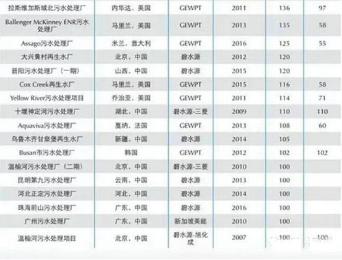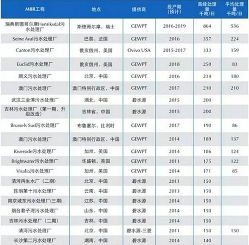 全球?qū)iT統(tǒng)計(jì)MBR技術(shù)、產(chǎn)品及項(xiàng)目的國(guó)際專業(yè)網(wǎng)站——MBR Site(www.thembrsite.com),日前發(fā)布統(tǒng)計(jì)數(shù)據(jù)顯示截至2015年3月為止的全球最大的MBR工程項(xiàng)目(含在建項(xiàng)目)及其運(yùn)行商信息。其中,碧水源和GE所承擔(dān)的項(xiàng)目數(shù)量最多,分別為18個(gè)和17個(gè)。