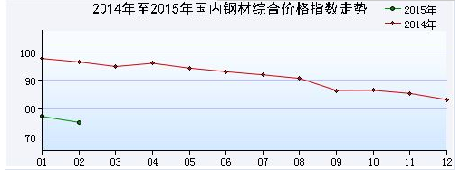 根據(jù)中國(guó)鋼鐵協(xié)會(huì)公布的數(shù)據(jù),2014年國(guó)內(nèi)鋼材綜合價(jià)格指數(shù)持續(xù)下跌,2015年伊始,仍然沒(méi)有改變鋼材價(jià)格下跌的趨勢(shì)。(見下圖)