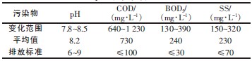 COD采用重鉻酸鉀法測(cè)定;BOD5采用稀釋與接種法測(cè)定;SS 采用重量法測(cè)定;pH 采用pH 酸度計(jì)測(cè)定;DO 采用便攜式溶解氧測(cè)定儀測(cè)定。