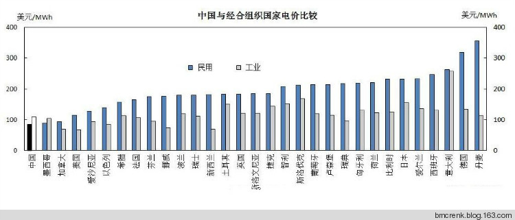 據發(fā)改委透露的信息顯示,中國居民電價長期低于歐美等地。歐盟統(tǒng)計局最新數(shù)據顯示,歐洲平均居民電價最高的是丹麥、塞浦路斯、德國和意大利,價格分別是29.7歐元/100度、29.1歐元/100度、26.8歐元/100度和23歐元/100度。最低的是保加利亞的9.6歐元/100度。歐盟27個國家同期平均電價是19.7歐元/100度,約1.4元人民幣/度。最貴的丹麥是2.3元人民幣/度,最便宜的保加利亞是0.76元人民幣/度??梢源笾聟⒖嫉氖?,上海居民平均電價為0.53元人民幣/度。我國居民電價平均水平為0.51元/度。