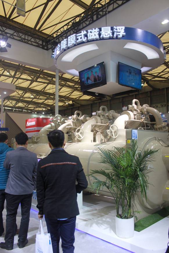 據(jù)悉,繼風(fēng)冷、水冷、水地源熱泵、模塊化磁懸浮之后,此次展出的大冷量降膜式磁懸浮,制冷量達(dá)到行業(yè)巔峰的2200RT,節(jié)能在50%的基礎(chǔ)上再獲突破,并以IPLV13.18刷新了行業(yè)能效比紀(jì)錄。同時通過自身獨有的全降膜技術(shù)將冷媒充注量減少50%,將帶來整個行業(yè)數(shù)以萬億計的能源節(jié)省,業(yè)內(nèi)專家現(xiàn)場表示,這將會是一個影響行業(yè)的技術(shù)創(chuàng)舉。