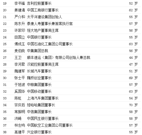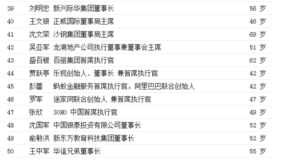 2015年中國最具影響力的50位商界領袖排行榜