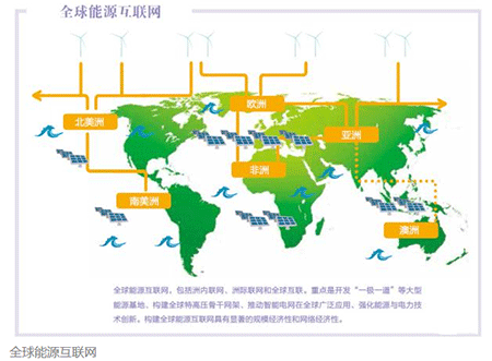 根據(jù)國家電網(wǎng)董事長劉振亞所著的《全球能源互聯(lián)網(wǎng)》一書的構(gòu)想,全球能源互聯(lián)網(wǎng)將由跨國跨洲骨干網(wǎng)架和涵蓋各國各電壓等級電網(wǎng)(輸電網(wǎng)、配電網(wǎng))的國家泛在智能電網(wǎng)構(gòu)成。亞洲各大可再生能源基地——蒙古國風(fēng)電和太陽能發(fā)電基地、俄羅斯遠(yuǎn)東和西伯利亞水電基地、中亞風(fēng)電和太陽能發(fā)電基地、中國“三北”風(fēng)電和西北太陽能發(fā)電基地、白令海峽及庫頁島風(fēng)電基地、印度太陽能與風(fēng)電基地等,都將成為亞洲互聯(lián)電網(wǎng)內(nèi)的電源送出點(diǎn)。