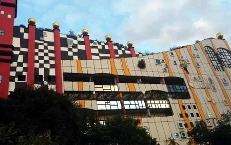 舞洲工場的外觀設(shè)計(jì)出自奧地利著名的生態(tài)建筑設(shè)計(jì)師百水先生之手,黃色和紅色的條紋象征著燃燒的烈焰,曲線的設(shè)計(jì)和綠色植物的設(shè)計(jì),減少了鋼筋水泥建筑帶給人的冰冷感覺,體現(xiàn)了建筑與自然的融合。