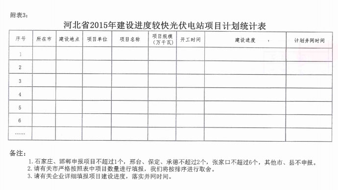 3.河北省2015年建設進度較快光伏電站項目計劃統(tǒng)計表