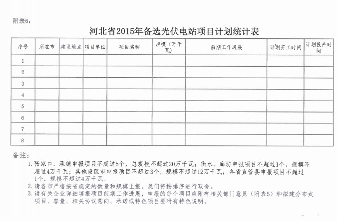 6.河北省2015年備選光伏電站項目計劃統(tǒng)計表
