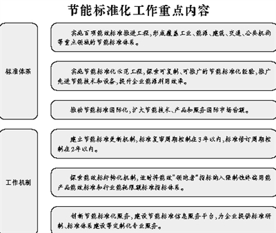 國家標(biāo)準(zhǔn)委總工程師殷明漢說,《意見》就加強節(jié)能標(biāo)準(zhǔn)化工作,提出能效“領(lǐng)跑者”制度,要求創(chuàng)新節(jié)能標(biāo)準(zhǔn)化服務(wù),建設(shè)節(jié)能標(biāo)準(zhǔn)信息服務(wù)平臺,為企業(yè)提供標(biāo)準(zhǔn)研制、標(biāo)準(zhǔn)體系建設(shè)等定制化專業(yè)服務(wù);完善標(biāo)準(zhǔn)體系,加強重點領(lǐng)域節(jié)能標(biāo)準(zhǔn)制修訂,實施百項能效標(biāo)準(zhǔn)推進(jìn)工程,形成覆蓋工業(yè)、能源、建筑、交通、公共機構(gòu)等重點領(lǐng)域的節(jié)能標(biāo)準(zhǔn)體系。實施節(jié)能標(biāo)準(zhǔn)化示范工程,探索可復(fù)制、可推廣的節(jié)能標(biāo)準(zhǔn)化經(jīng)驗,推廣先進(jìn)節(jié)能技術(shù)和設(shè)備,提升企業(yè)能源利用效率。推動節(jié)能標(biāo)準(zhǔn)國際化,擴大節(jié)能技術(shù)、產(chǎn)品和服務(wù)國際市場份額。