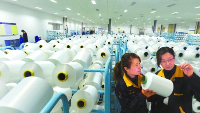 目前,總投資45億元的德為聚纖公司將和4家本地紡織企業(yè)對(duì)接,實(shí)現(xiàn)“就地取材”、抱團(tuán)發(fā)展。一季度,尤溪縣規(guī)模以上紡織企業(yè)實(shí)現(xiàn)產(chǎn)值38.6億元,同比增長(zhǎng)7.1%。圖為近日德為公司工人在察看產(chǎn)品質(zhì)量。