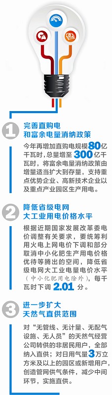 提出完善大用戶直購電的相關(guān)措施,再增加直購電規(guī)模80億千瓦時(shí),總量增至300億千瓦時(shí)。在推進(jìn)電力交易和電力價(jià)格市場化的同時(shí),將更多地降低直購電試點(diǎn)企業(yè)用電成本,打造更多具有市場競爭力的企業(yè),這些企業(yè)的生存和壯大也為電網(wǎng)企業(yè)培養(yǎng)了可持續(xù)發(fā)展的客戶群,有利于富余電量的消納。