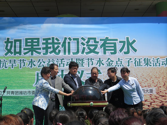 近年,濰坊平均降水量比歷年同期減少五成,而作為濰坊主要水源地的峽山水庫(kù)、白浪河水庫(kù)等均出現(xiàn)供水告急。濰坊市面臨著嚴(yán)重的干旱,供水形勢(shì)十分嚴(yán)峻。本次活動(dòng)旨在倡導(dǎo)濰坊市民重視旱災(zāi),積極為節(jié)水抗旱出謀劃策,從自身做起節(jié)約用水。