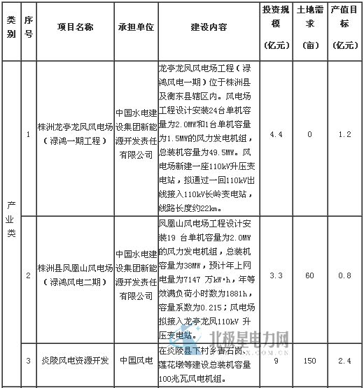 (2)株洲縣鳳凰山風(fēng)電場項目。項目總投資3.3億元,占地60畝,總裝機容量為38MW。