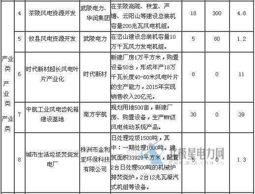 加大前期工作力度,盡快完成項目開工前相關(guān)手續(xù),爭取2015年總投資50億元,開工建設(shè)總裝機容量為300兆瓦,投資27億元的茶陵縣太和仙、嚴(yán)塘、云陽仙、炎陵縣下村鄉(xiāng)青石崗、蓮花墩等風(fēng)力發(fā)電項目,對風(fēng)電場簽訂協(xié)議兩年內(nèi)未開發(fā)建設(shè)的,要調(diào)整業(yè)主;投資3億元,建設(shè)30兆瓦發(fā)電機組的茶陵凱迪生物質(zhì)電廠;投資20億元建設(shè)200MW光伏分布式發(fā)電項目;加快推進(jìn)300萬平方米地源熱泵項目建設(shè)。