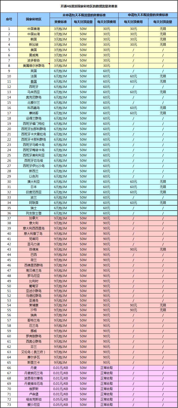 此外,中國移動(dòng)還在已開通4G漫游的16個(gè)國家和地區(qū)推出“30元/60元/90元包天不限流量資費(fèi),低至30元/天起??蛻糁灰l(fā)送短信“KTGJWFD”至10086即可申請(qǐng),申請(qǐng)成功后,每天在同一漫游地流量包累計(jì)疊加10次后,費(fèi)用封頂,當(dāng)天流量繼續(xù)使用不再額外收費(fèi)。如未做申請(qǐng),則默認(rèn)執(zhí)行“每天30元/60元/90元費(fèi)用封頂+流量50M封頂”規(guī)則。
