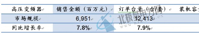 2013年中國(guó)高壓變頻器市場(chǎng)規(guī)模為69.51億元,訂單量為12413臺(tái)。銷(xiāo)售額同比增長(zhǎng)7.8%,訂單臺(tái)量同比增長(zhǎng)7.9%。高壓變頻器市場(chǎng)逐步回暖,穩(wěn)步前行。