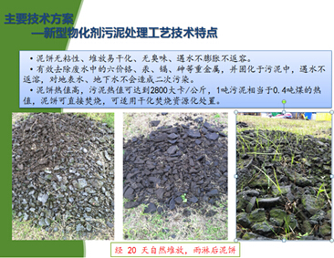 技術原理是:固液分離加固化技術。通過物料間的凝聚、吸附、氧化、電化學、螯合、固化等作用和反應,對剩余污泥中存在的有機或無機物質進行固相和液相分離處理,同時對水體中存在的有機或無機物質進行液相和固相分離,再對固相進行固化處理,使其不返溶。從而達到泥土結構穩(wěn)定、澄清和凈化水體的目的。