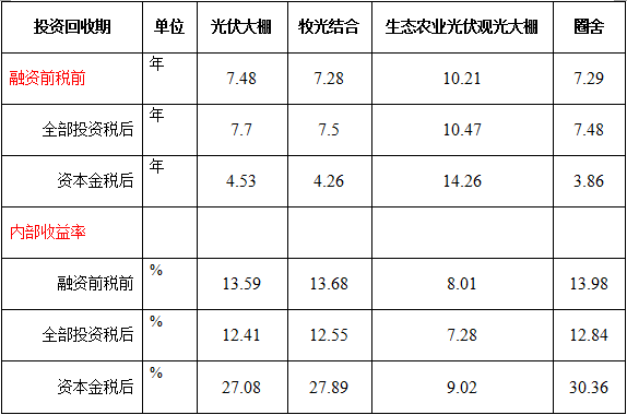 4)圈舍屋頂反映了一般分布式項(xiàng)目在此地的收益狀況,效益非常好,為13.98%。