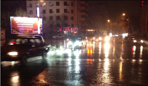 4月14日23時(shí)許,烏市遭遇雨夾雪天氣。