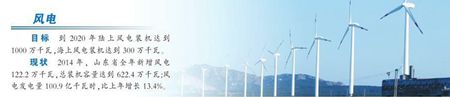郭曉東表示,作為石化燃料的替代,山東正大力發(fā)展清潔能源。2014年,山東全年新增風電122.2萬千瓦,年底總裝機達到622.4萬千瓦,風電發(fā)電量100.9億千瓦。