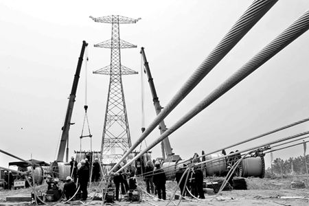5月10日,在明光市橋頭鎮(zhèn),由國網(wǎng)安徽送變電工程公司承建的淮南—南京—上海1000千伏特高壓輸電線路3標(biāo)段工程開始展放1000千伏特高壓線路輸電導(dǎo)線,標(biāo)志安徽段進(jìn)入導(dǎo)地線架設(shè)施工階段。據(jù)悉,總投資約261.1億元的淮南—南京—上海1000千伏特高壓輸變電工程,新建輸電線路2×779.5公里,其中安徽段近160公里,計劃在今年底完工并具備送電條件。