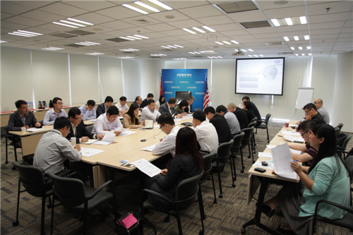 ECP執(zhí)行主任簡(jiǎn)杰銳(Geoff Jackson),美國(guó)駐華使館商務(wù)處官員畢子介(Jay Biggs),美國(guó)能源部效和可再生能源辦公室國(guó)際合作項(xiàng)目主任Robert Sandoli以及副主任Nicholas Carlson,ECP能源金融與投資工作組聯(lián)席主席Clay Nesler,EMCA副主任秘書(shū)長(zhǎng)趙明等參加會(huì)議。