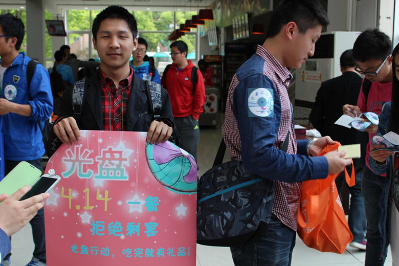 活 動初期,針對目前中國普遍存在的糧食浪費問題,食品班的同學們就新生進行了隨機采訪與咨詢。通過調(diào)查分析發(fā)現(xiàn),交大學生中依舊存在普遍的浪費糧食的習慣, 在慎重考慮后,食品班選擇以光盤行動這一主題構思與設計,旨在喚醒同學們的節(jié)糧意識,激發(fā)從我做起、合理點餐的勤儉態(tài)度。在宣傳過程中,主要通過網(wǎng)絡平臺 和線下海報的方式。本次活動的宣傳亮點在于食品班同學發(fā)起了收集廢舊光盤的創(chuàng)意活動,征集了同學們不用的廢舊光盤,并加以回收利用,進行倡導節(jié)約的“雙光 盤”行動,進一步擴大了宣傳力度。
