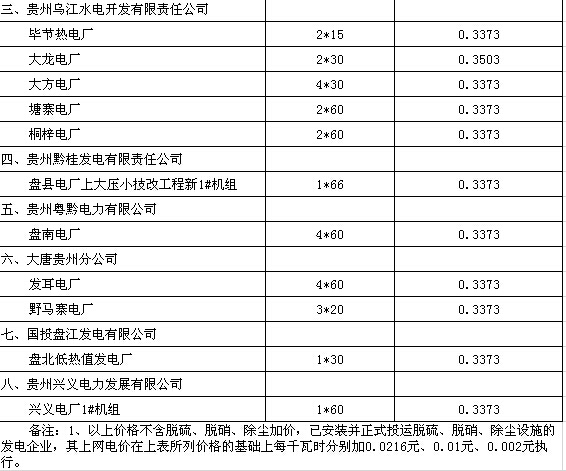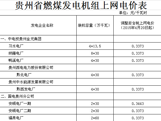 附件:1.貴州省燃煤發(fā)電機(jī)組上網(wǎng)電價表