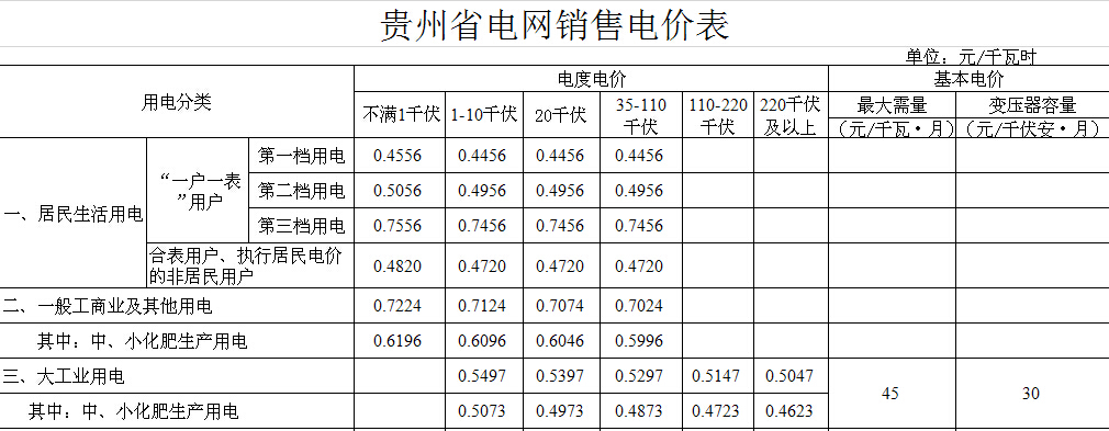 貴州關(guān)于降低我省燃煤發(fā)電上網(wǎng)電價和調(diào)整銷售電價等有關(guān)問題的通知