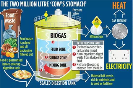 近年來,英國(guó)在餐廚垃圾處理方面最具轟動(dòng)效應(yīng)的當(dāng)屬利用餐廚垃圾發(fā)電。2011年,英國(guó)廢物處理公司建設(shè)了全球首個(gè)全封閉式餐廚垃圾發(fā)電廠,利用餐廚垃圾進(jìn)行發(fā)電。目前,這家發(fā)電廠平均每天可以處理12萬噸垃圾,發(fā)電150萬千瓦時(shí),可供應(yīng)數(shù)萬戶家庭24小時(shí)用電。