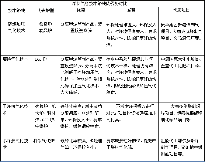 碎煤加壓氣化技術(shù)反應(yīng)溫度為中高溫,兼具干餾功能,可分解出甲烷、焦油等副產(chǎn)品,對(duì)煤制氣來說,副產(chǎn)甲烷,可降低所需氣化能力及后續(xù)配套設(shè)備規(guī)模,進(jìn)而壓縮整體投資。這一技術(shù)缺點(diǎn)在于,中低溫分離出價(jià)值產(chǎn)品外,煤中雜質(zhì)無法有效分解,進(jìn)入污水中,增大水處理難度。