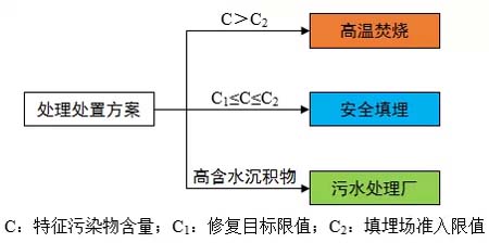 前已述及,該場(chǎng)地涉及的應(yīng)急修復(fù)對(duì)象包括爆炸現(xiàn)場(chǎng)、排水明渠、地下排水涵管,需要處理的廢物包括污染土壤、明渠底泥、涵管沉積物、NAPL及積存受污染水,不同修復(fù)對(duì)象需要達(dá)到不同的修復(fù)目標(biāo),清除出的土壤、底泥、沉積物等廢物需要明確其管理屬性。