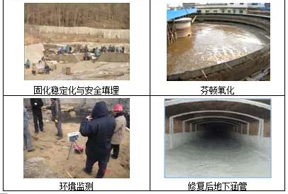 沉積物及污染土壤清除:本場(chǎng)地涉及約3km長(zhǎng)的地下排水涵管,其中沉積物的清除屬于地下密閉空間作業(yè),且其中尚有較多積水存在,是應(yīng)急修復(fù)工程的難點(diǎn)。經(jīng)反復(fù)比選論證,地下涵管段采用分段排水,人工為主、機(jī)械為輔清淤作業(yè)方式,其中殘留的高濃度液態(tài)污染物采用原位芬頓氧化技術(shù)去除;明渠段采用圍堰阻水,機(jī)械為主、人工為輔清淤作業(yè)方式。