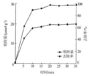 圖 1 吸附量隨反應(yīng)時(shí)間變化